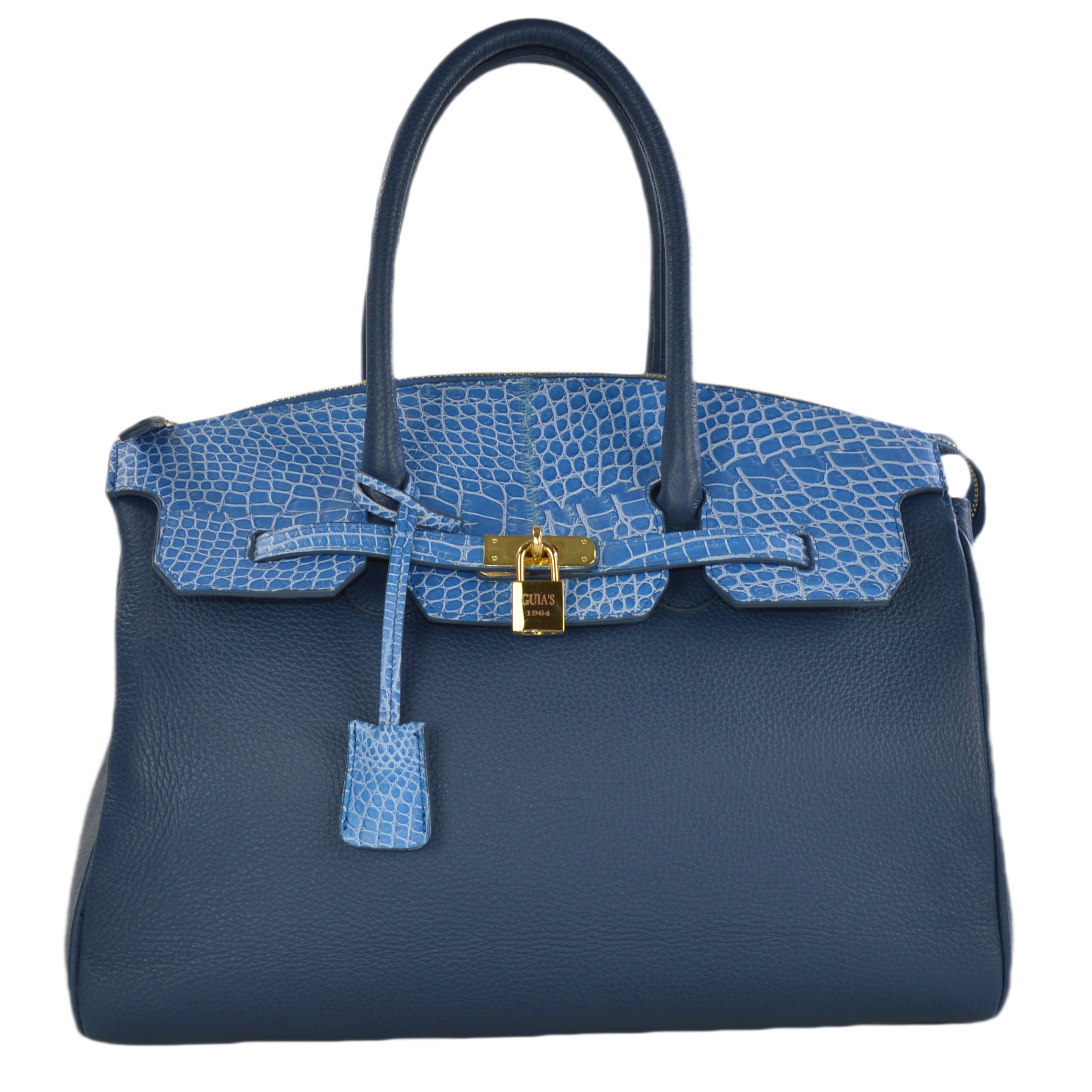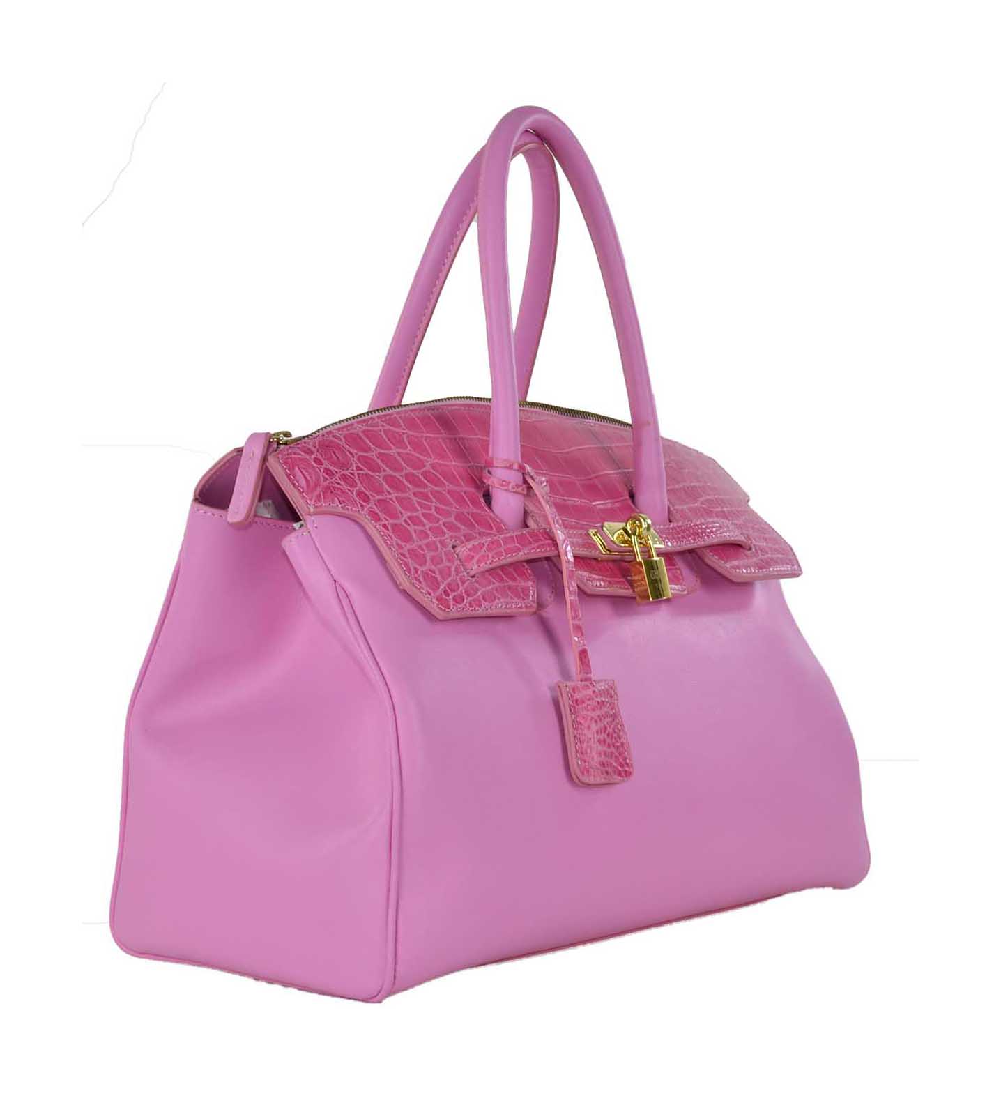 Borsa a mano classica in pelle soft e vero coccodrillo
